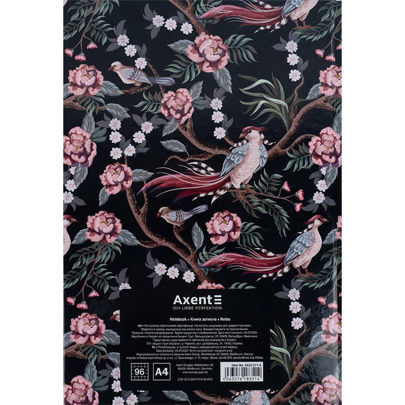 Notizbuch Axent Birds&Flowers-4 8422-571-A, А4, 96 Blatt, kariert