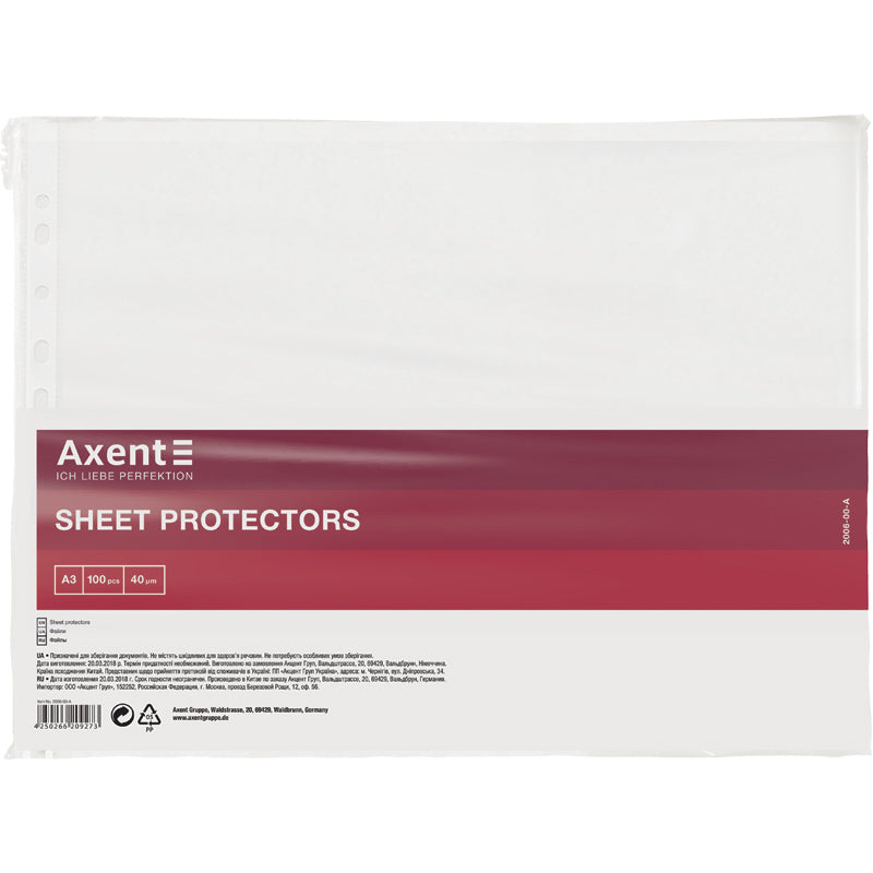 Mappe Axent 2006-00-A A3, glänzend, 40 μm, 100 Stück, horizontal