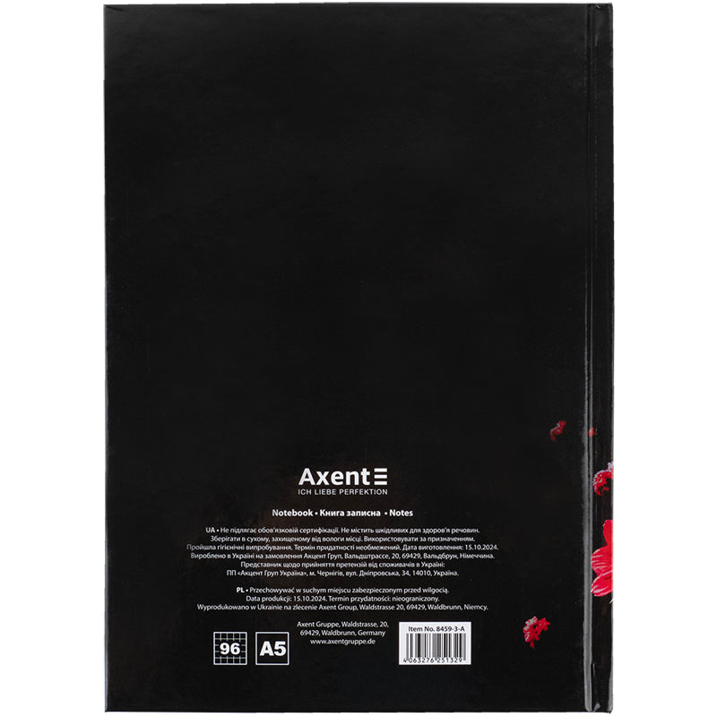 Notizbuch Axent Red fleur 8459-3-A, A5, 96 Blätter, Zelle, Hardcover