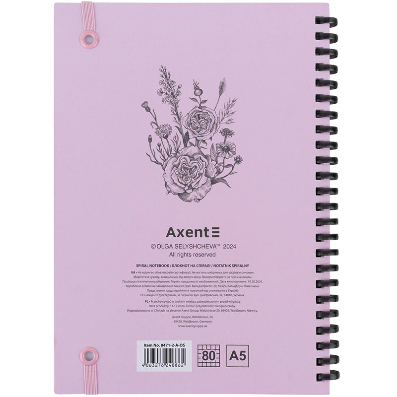 Spiral notebook Axent Olga Selyshcheva, Pink Roses 8471-2-A-OS, A5, 80 sheets, squared, cardboard cover