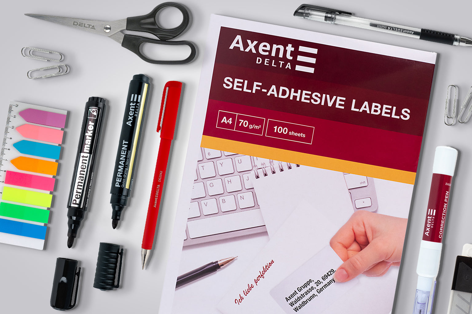 Für die wichtigsten Büroartikel von Axent gibt es auch Entsprechungen in der preisgünstigen Delta-Linie. Funktionalität, Schlichtheit und universelles Design sind die beständigen Merkmale der Schreibwaren dieser Serie. Perfektion entsteht in auf den ersten Blick einfachen Dingen: im Gefühl, dass alles dort ist, wo es sein sollte, im Anspruch auf Komfort und in der Gewohnheit, Inspiration in den kleinen Dingen zu finden.