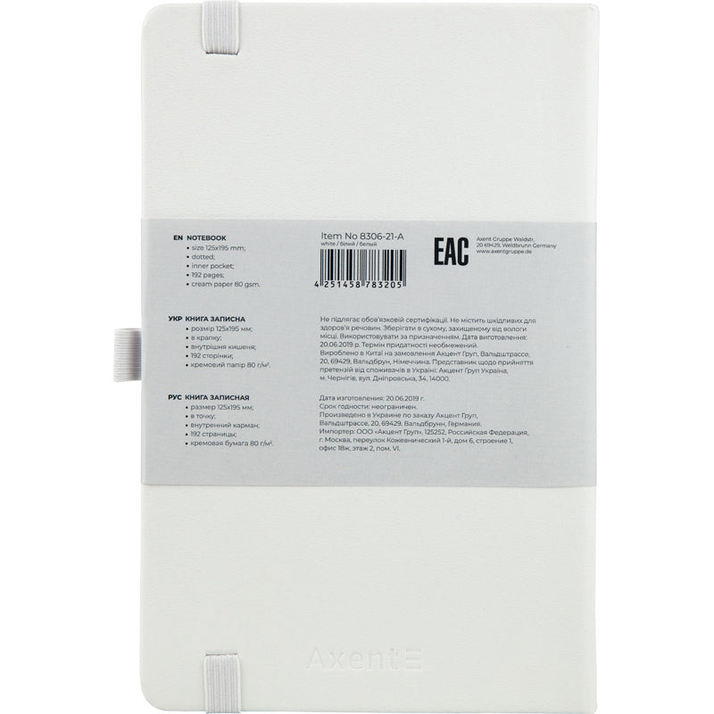 Notizbuch Axent Partner 8306-21-A, A5-, 125x195 mm, 96 Blatt, gepunktet, harter umschlag, weiß