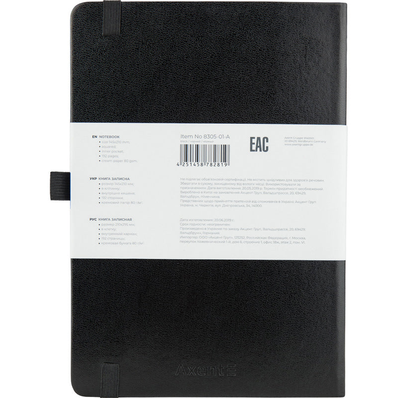 Notizbuch Axent Partner Prime 8305-01-A, A5, 145x210 mm, 96 Blätter, kariert, harter umschlag, schwarz